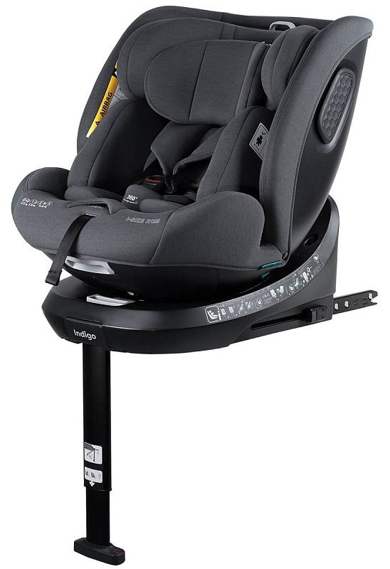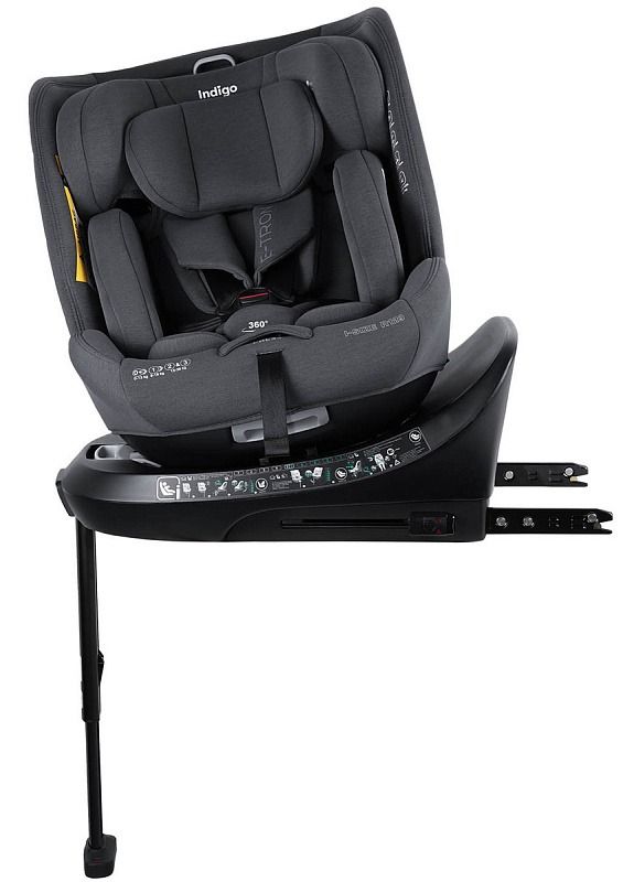 Автокресло детское INDIGO "E-TRON ISOFIX I-SIZE", с упором, группа 0+1+2+3 (0-36 кг), цвет серый