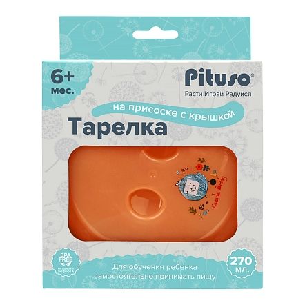 Тарелка детская на присоске с крышкой "PITUSO" 270 мл