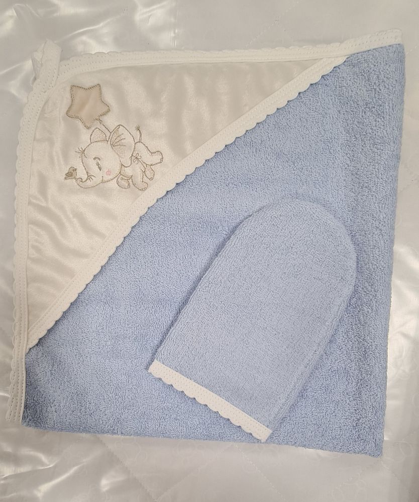 Полотенце для купания "Слоники" с варежкой, размер 75*75 см, ш650/40