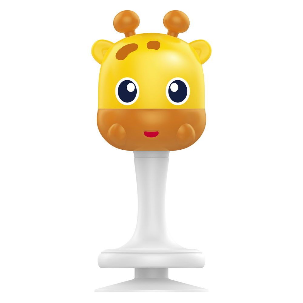 Погремушка оснащена практичной присоской и позволяет закрепить игрушку на поверхности.