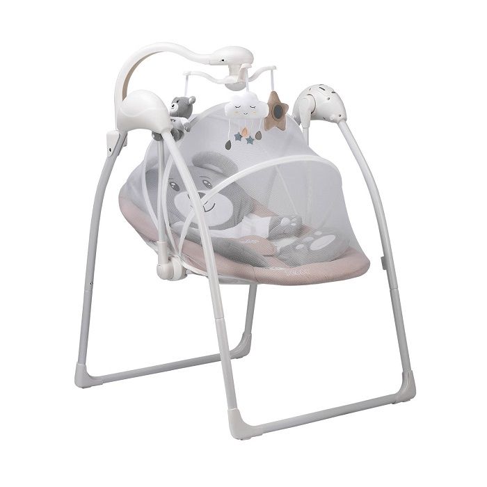 Все, что нужно для комфорта: Качели предлагают просторную, удобную люльку-шезлонг с приятной к телу тканью и мягким вкладышем в форме мишки, а также съемный музыкальный мобиль с игрушками, чтобы малыш был занят и увлечен.