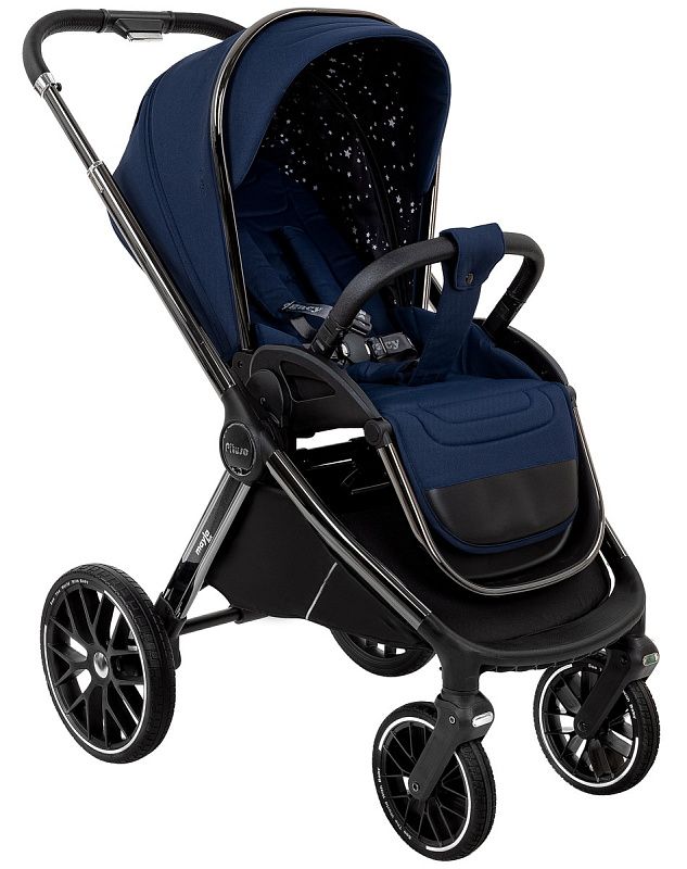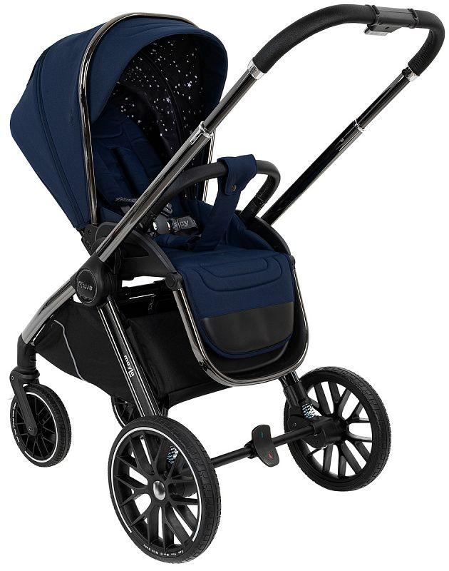 Прочная и легкая алюминиевая рама оснащена большими бескамерными колесами и системой амортизации, обеспечивающей плавный ход даже по неровному дорожному покрытию. Покрыта Black Chrome, которое обеспечивает устойчивость к перепаду температур, повышенной влажности.