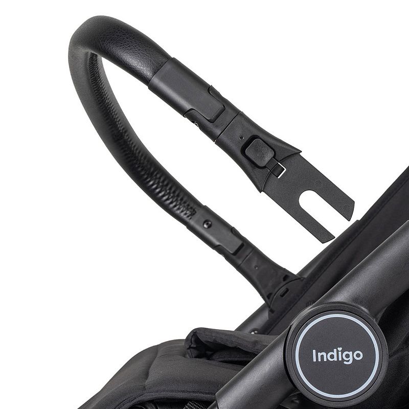Коляска Indigo Era оснащена комфортным спальным местом почти 89х37 см. Спинка регулируется механически, одной рукой, от сидячего до почти горизонтального положения. Подножка поднимается, позволяя малышу комфортно сидеть во время прогулки. Часть подножки выполнена из легко моющих материалов, что позволит быстро очистить коляску после прогулки. Для безопасности ребенка предусмотрены 5-ти точечные ремни безопасности с мягкими накладками, съемный бампер с покрытием из эко кожи и перемычкой между ножек от сползания.