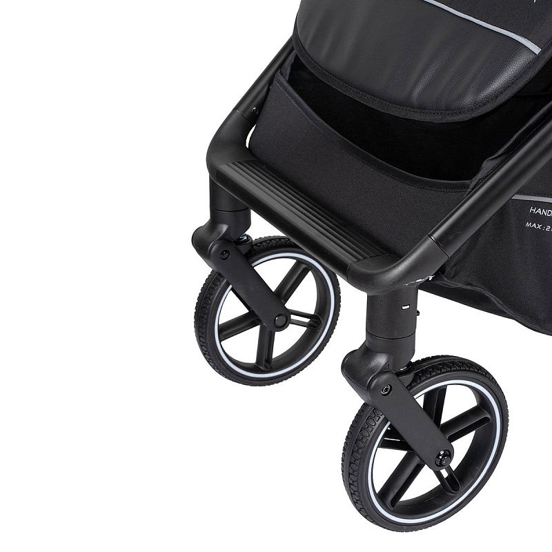 У коляски современные колеса из вспененного полиуретана. Такие колеса просты в обслуживании и долговечны. Они не боятся проколов, и не зависят от температурных перепадов на улице. Легко снимаются для более компактного сложения коляски или для мытья и ухода. Передние поворотные и регулируемая по высоте ручка позволят родителям наслаждаться легким и комфортным управлением коляски.