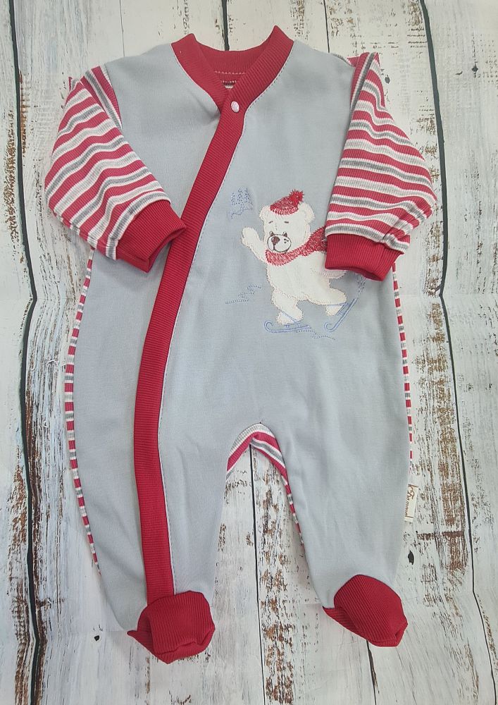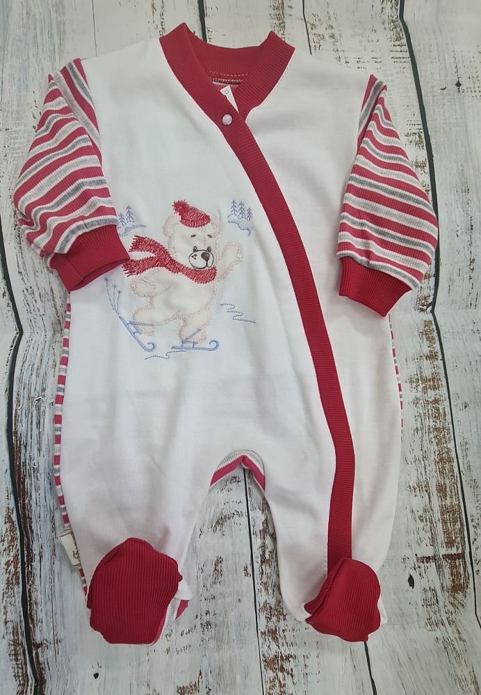Комбинезон с вышивкой "Мишка на коньках" трикотаж, р. 68 арт.ш111