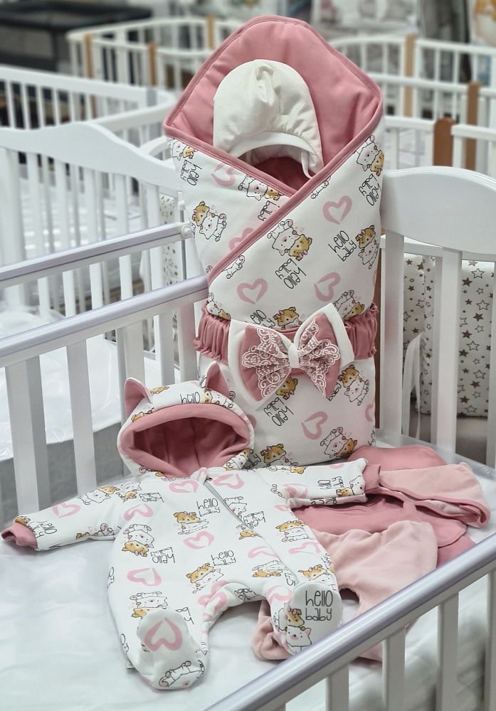 Комплект на выписку "Лапки" цвет розовый