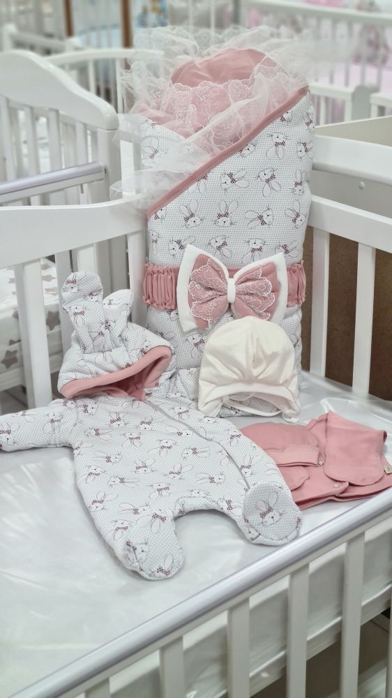 Комплект на выписку "Заяц Платошка" цвет розовый
