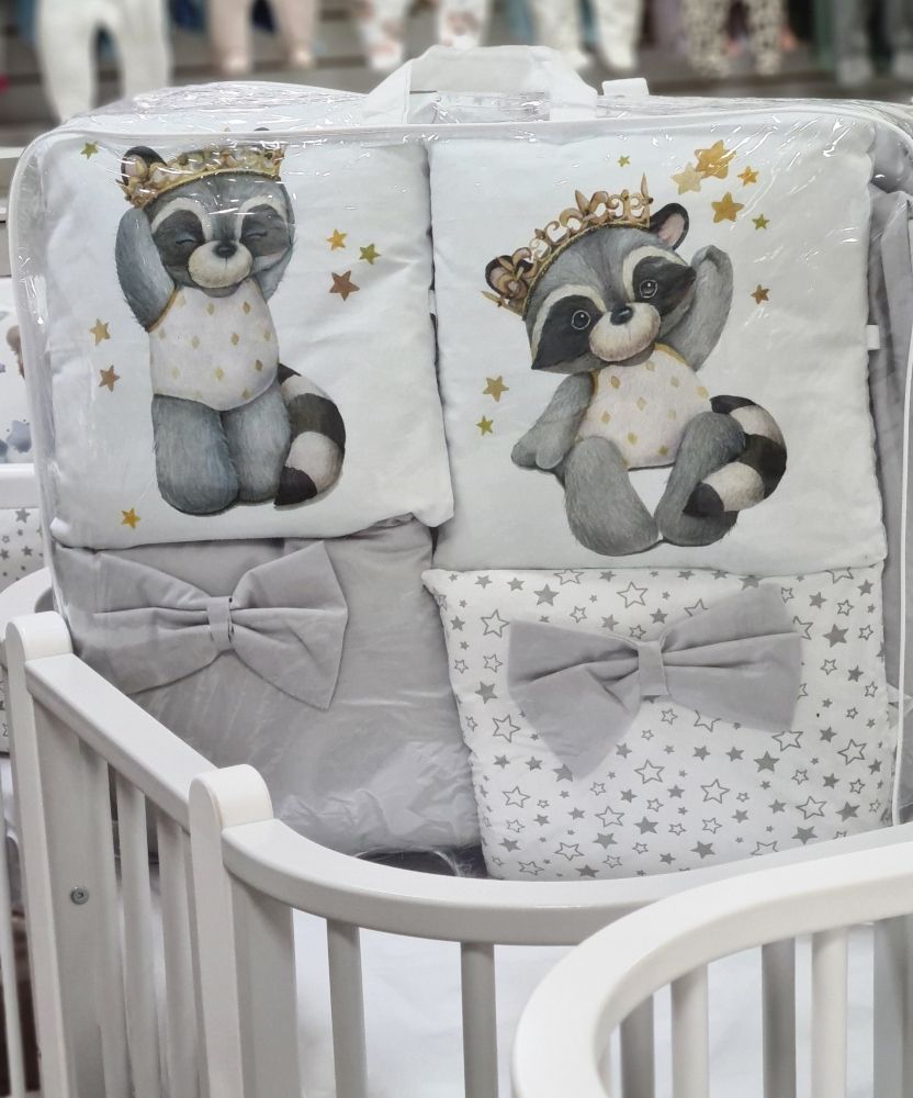 Комплект универсальный в овальную и стандартную кроватку "Енотик" сатин, 17 предметов