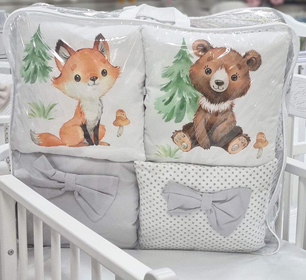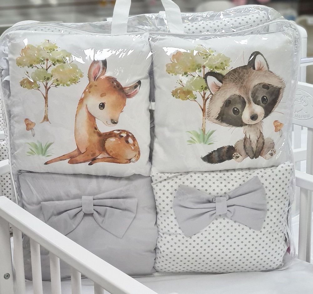 Комплект универсальный в овальную и стандартную кроватку "Олененок/Енотик" сатин,17 предметов