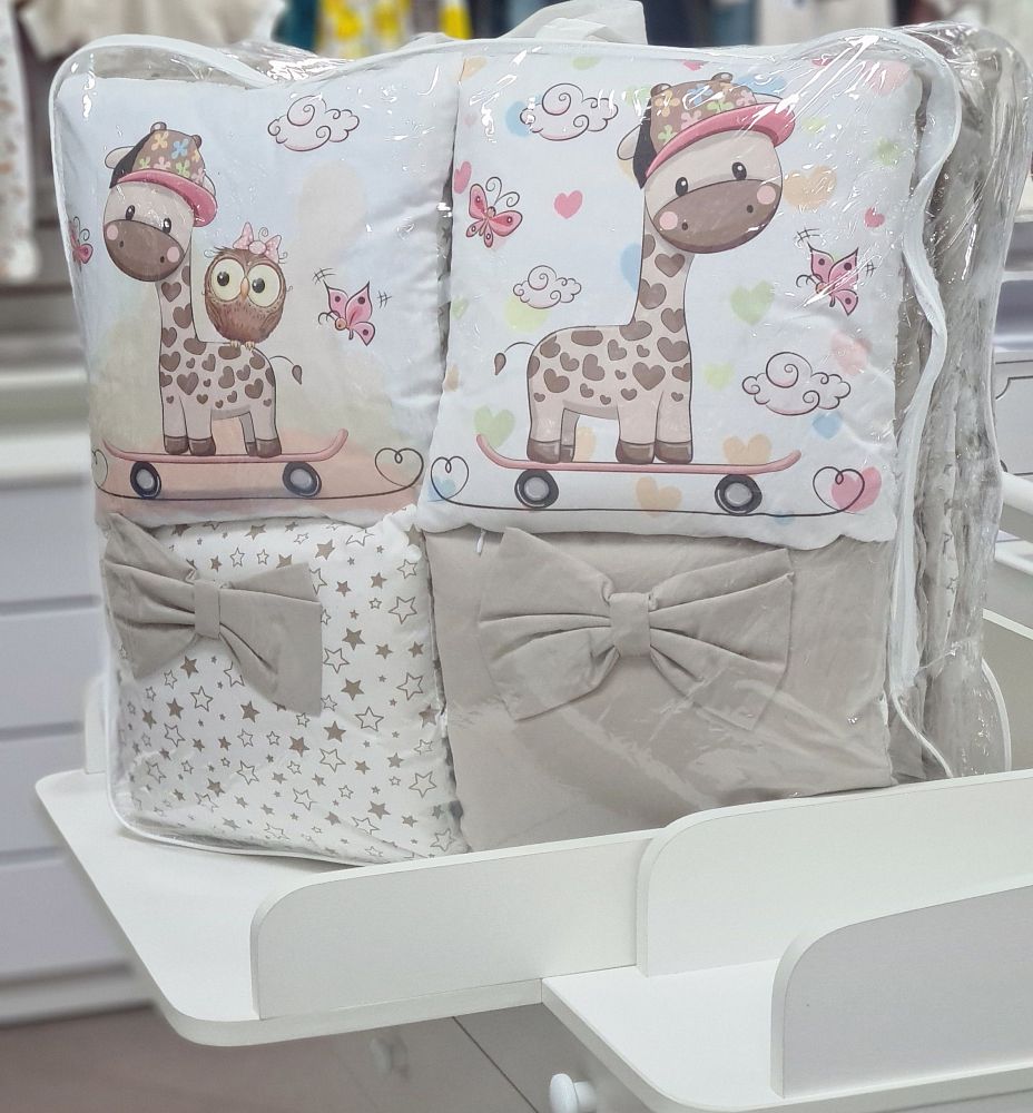 Комплект универсальный в овальную и стандартную кроватку "Жирафики" САТИН 17 предметов