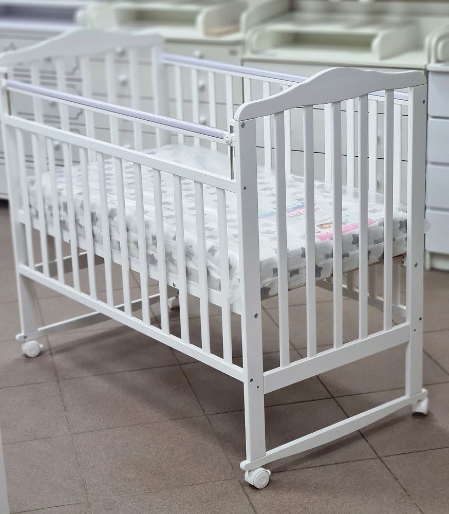 Кроватка детская Indigo "Милана NEW+" колесо/качалка, цвет белый