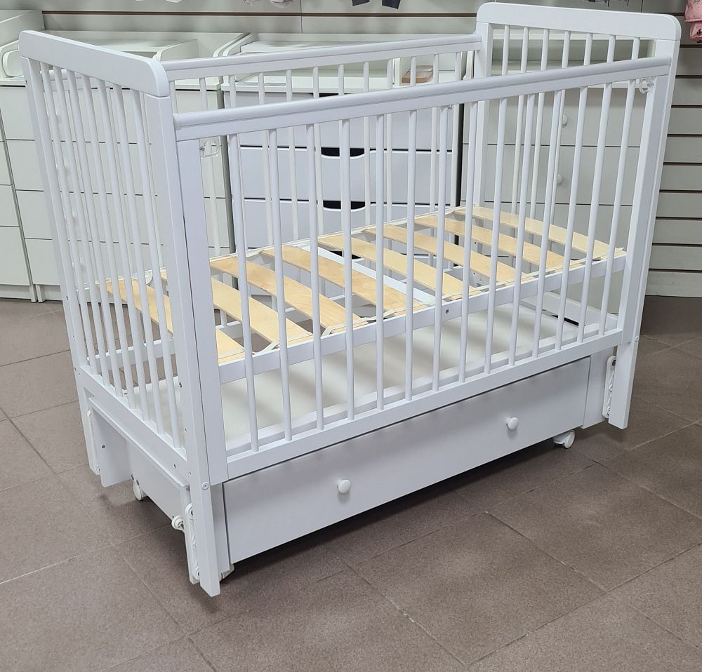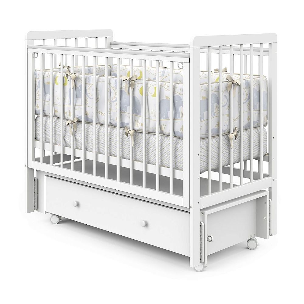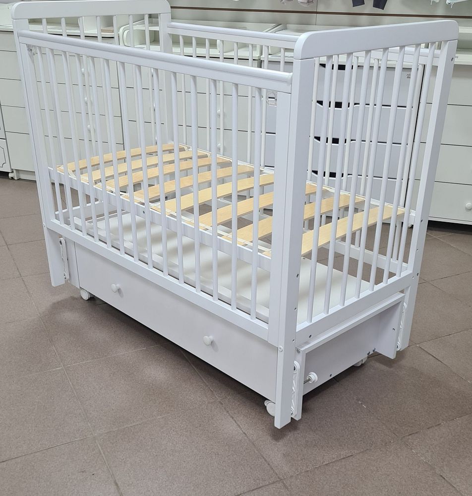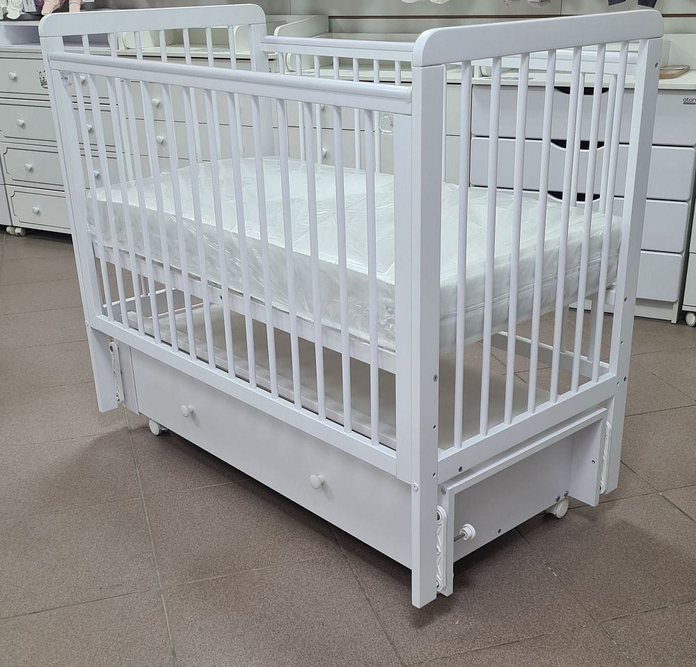 Кроватка детская Pituso "Tiny" ящик, продольный маятник/колесо, Белая аляска