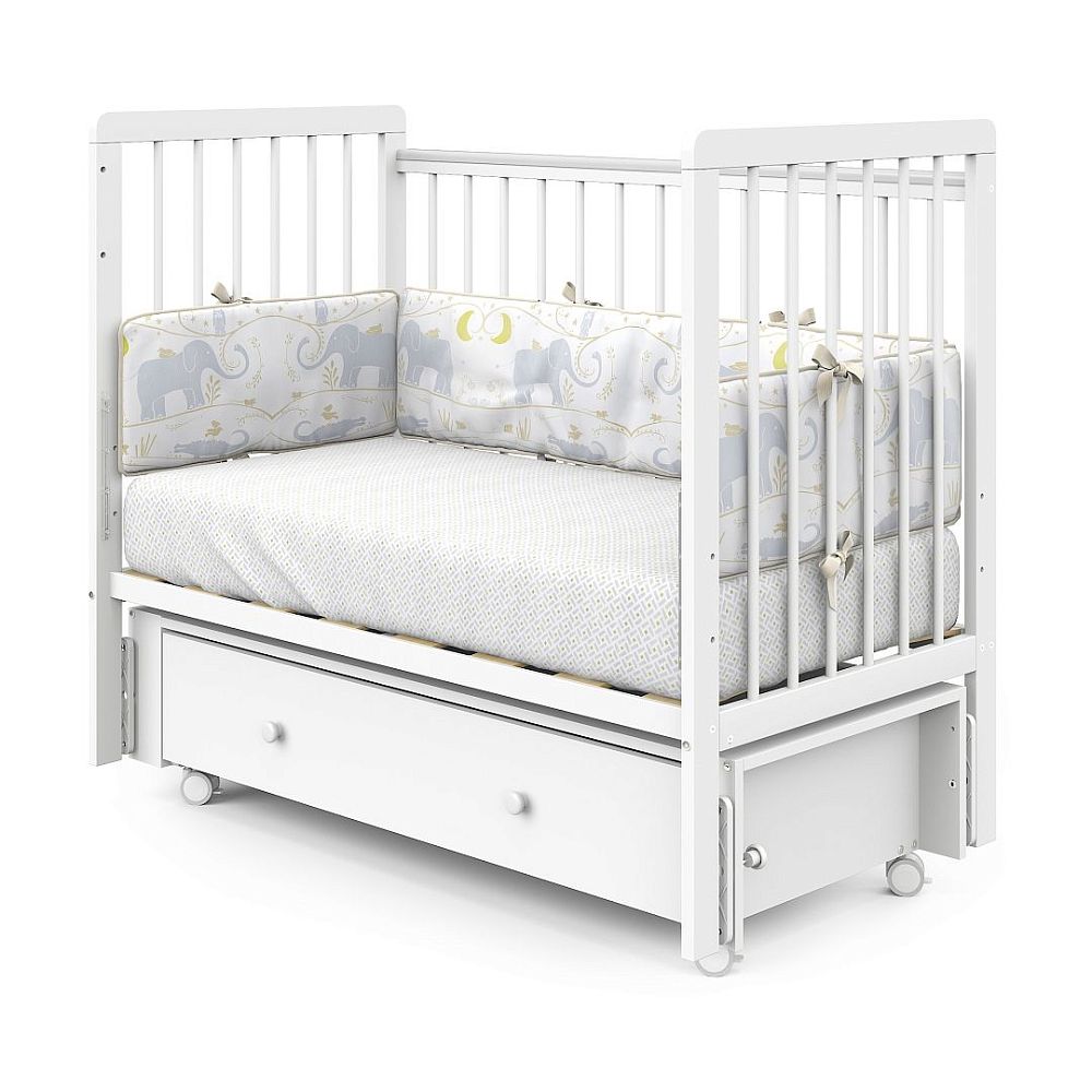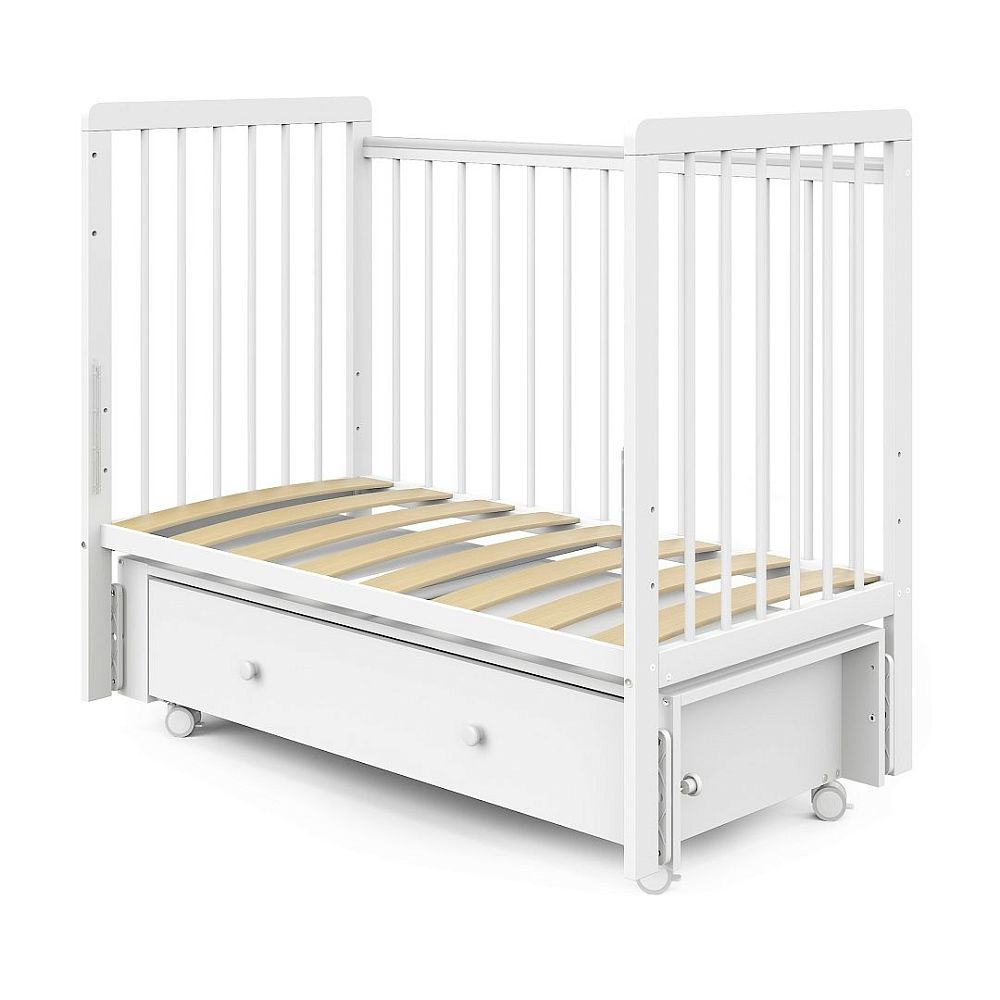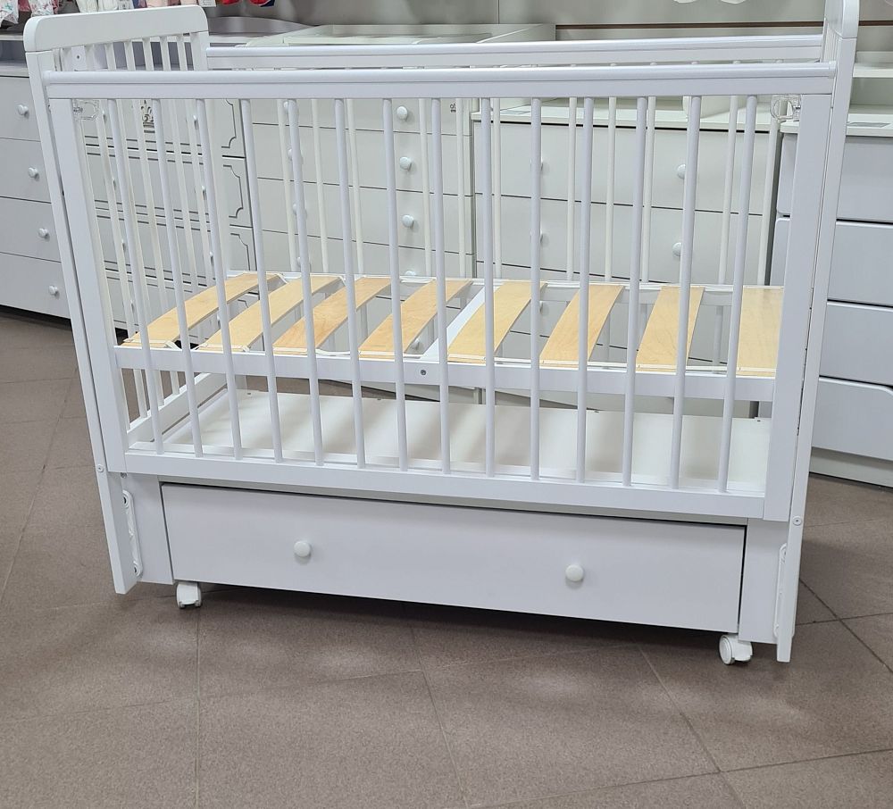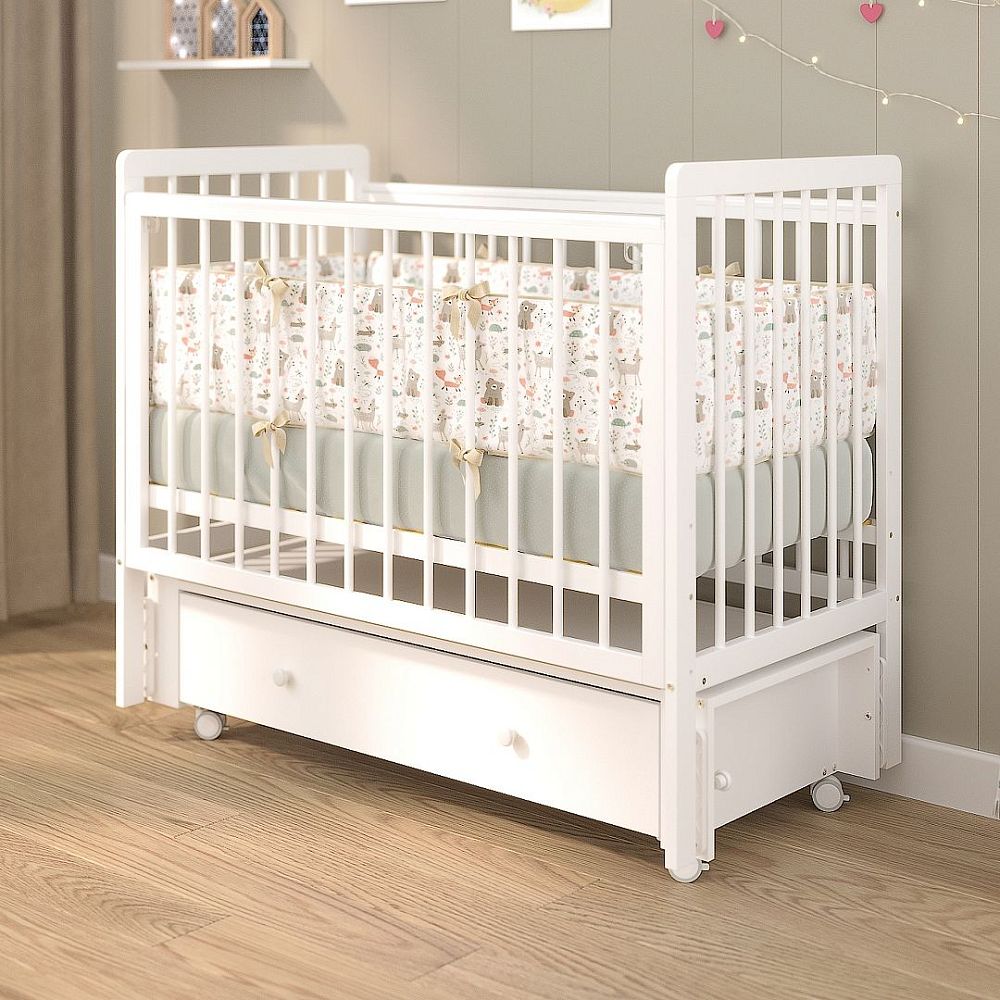 Кроватка детская Pituso "Tiny" ящик, продольный маятник/колесо, Белая аляска
