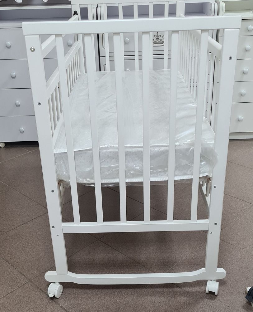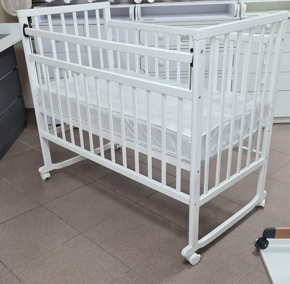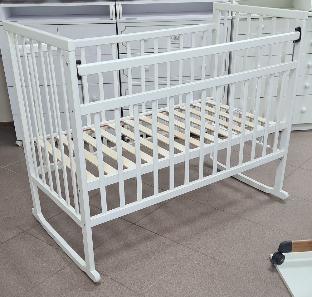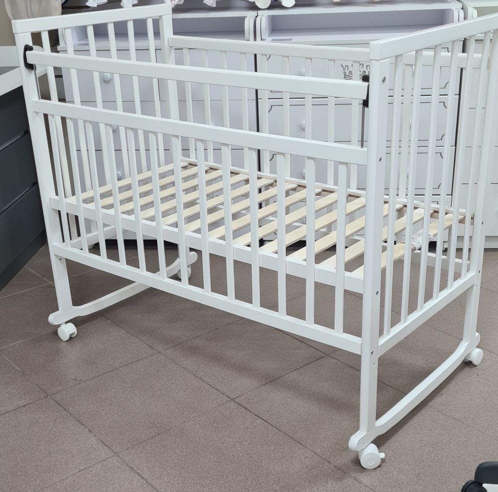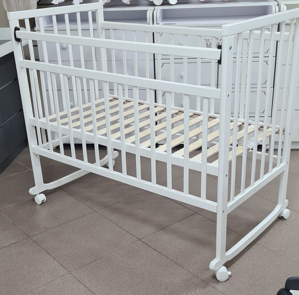 Кровать детская "Мой малыш 2" колесо/качалка,2 уровня,автопланка, цвет: белый