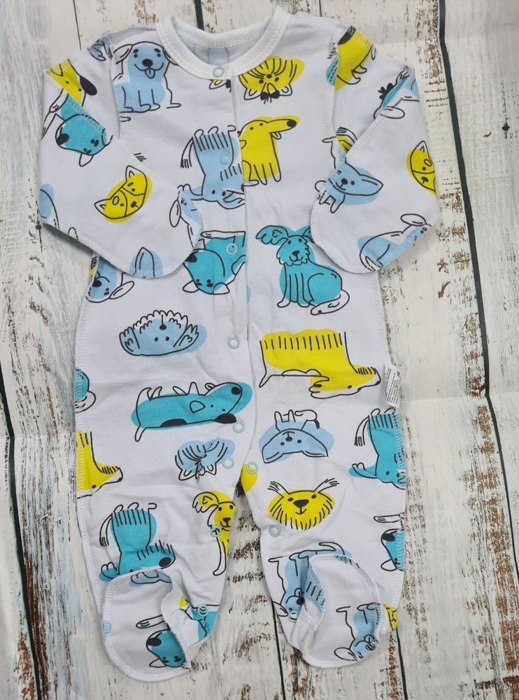 Комбинезон ясельный футер, р.62 (белый с собачками) 1335301102