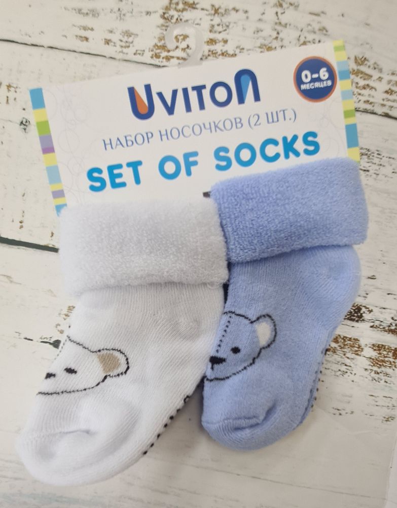 Набор носочков Uviton "Bear" 2шт. (голубой/белый) 0-6мес. (махра)