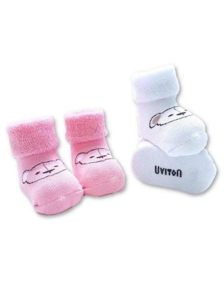 Набор носочков Uviton "Bear" 2шт. (розовый/белый) 0-6мес. (махра)
