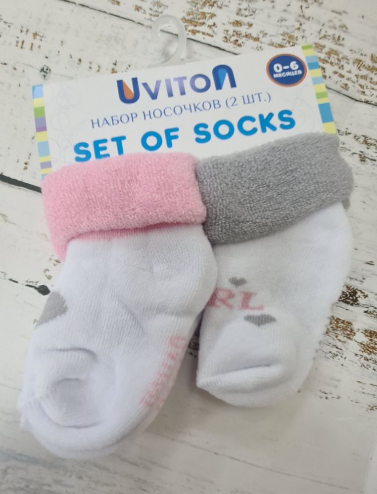 Набор носочков "Uviton" Mini 2шт. 0-6мес. розовый (махра)