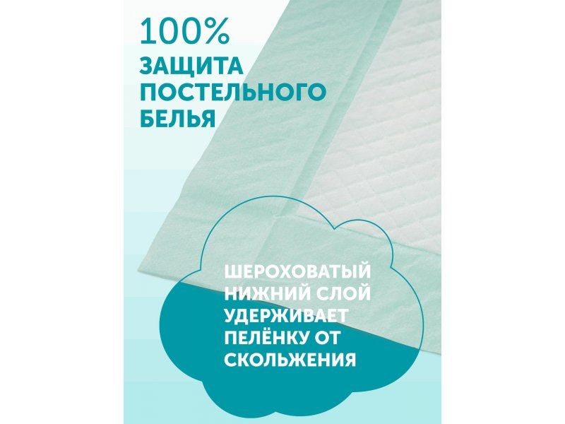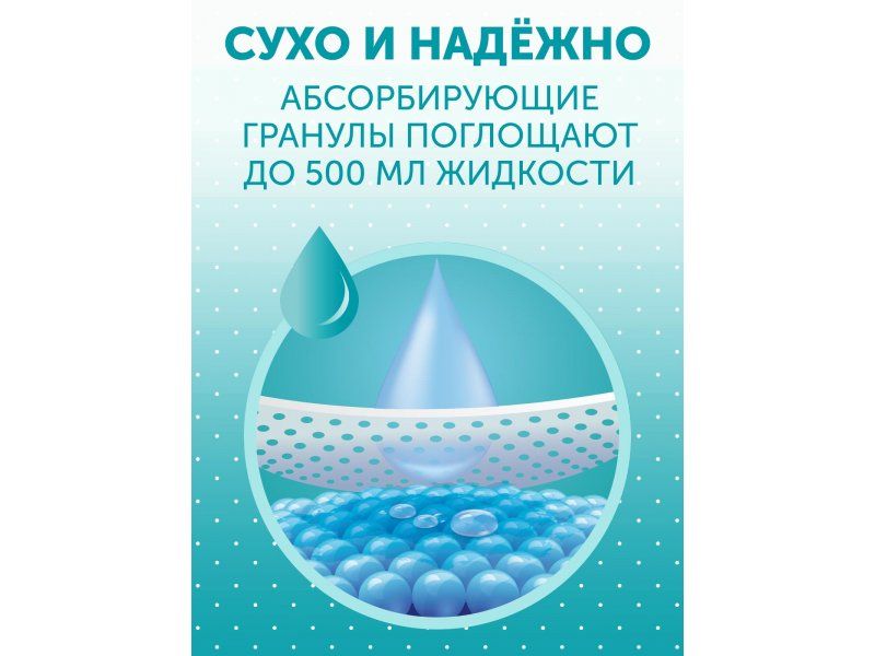 Впитывающий слой из целлюлозы с добавлением суперабсорбента обеспечивает пеленке сухость, что избавляет вас от необходимости ее замены после однократного намокания, исключает риск появления кожных покраснений от длительного контакта с влагой.