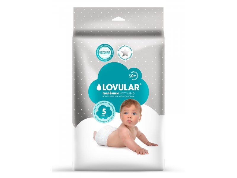 Пеленки впитывающие одноразовые Lovular Hot Wind, 60*90 см, 5 штук