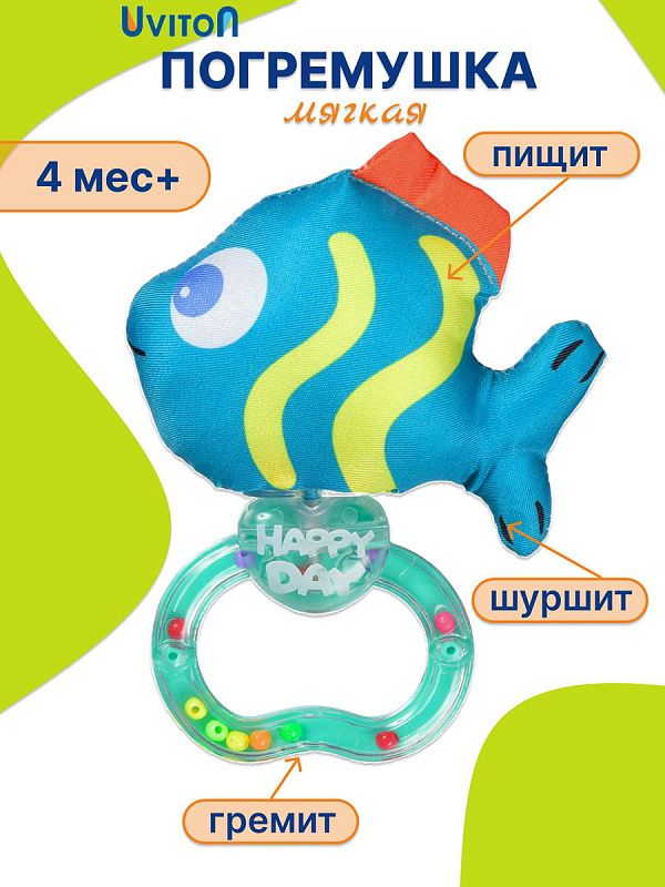 Игрушка-погремушка Uviton "Sea friends" (бирюзовая рыбка)